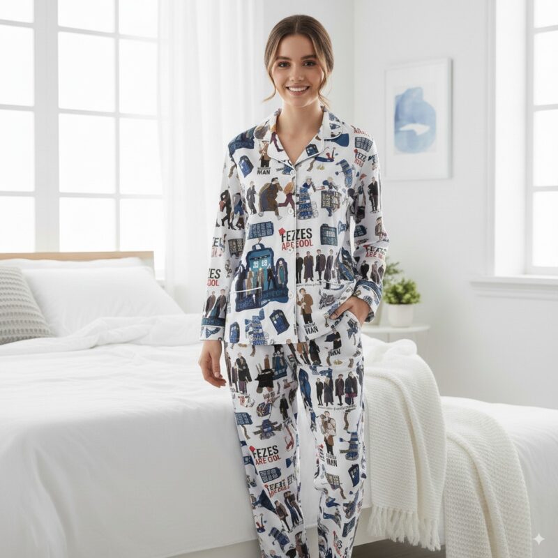 Doctor Who Pajamas Set, Doctor Who Pajamas Family, Dr Who Pajamas Pants, Tardis Police Box Christmas Pajamas, Tv Series Pjs