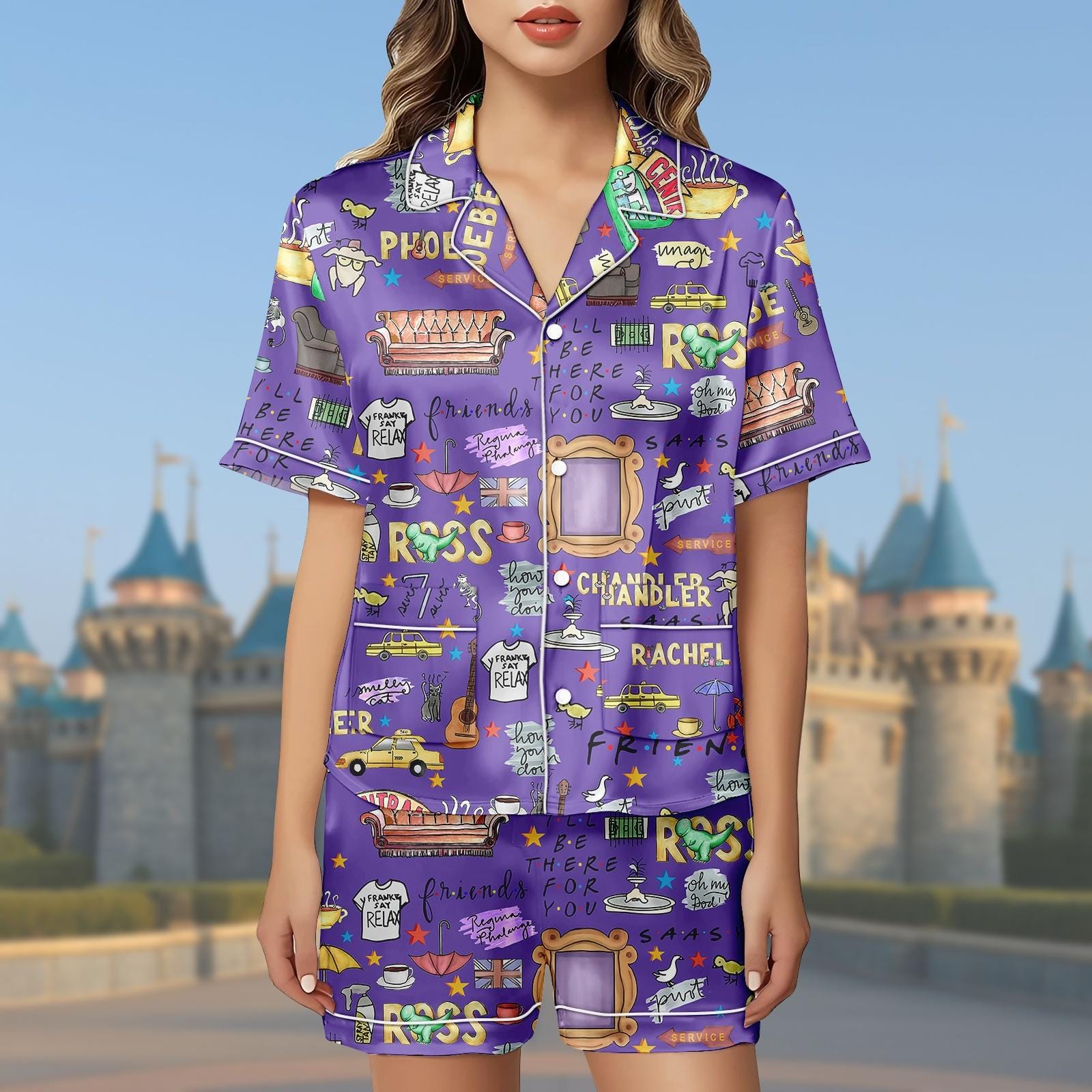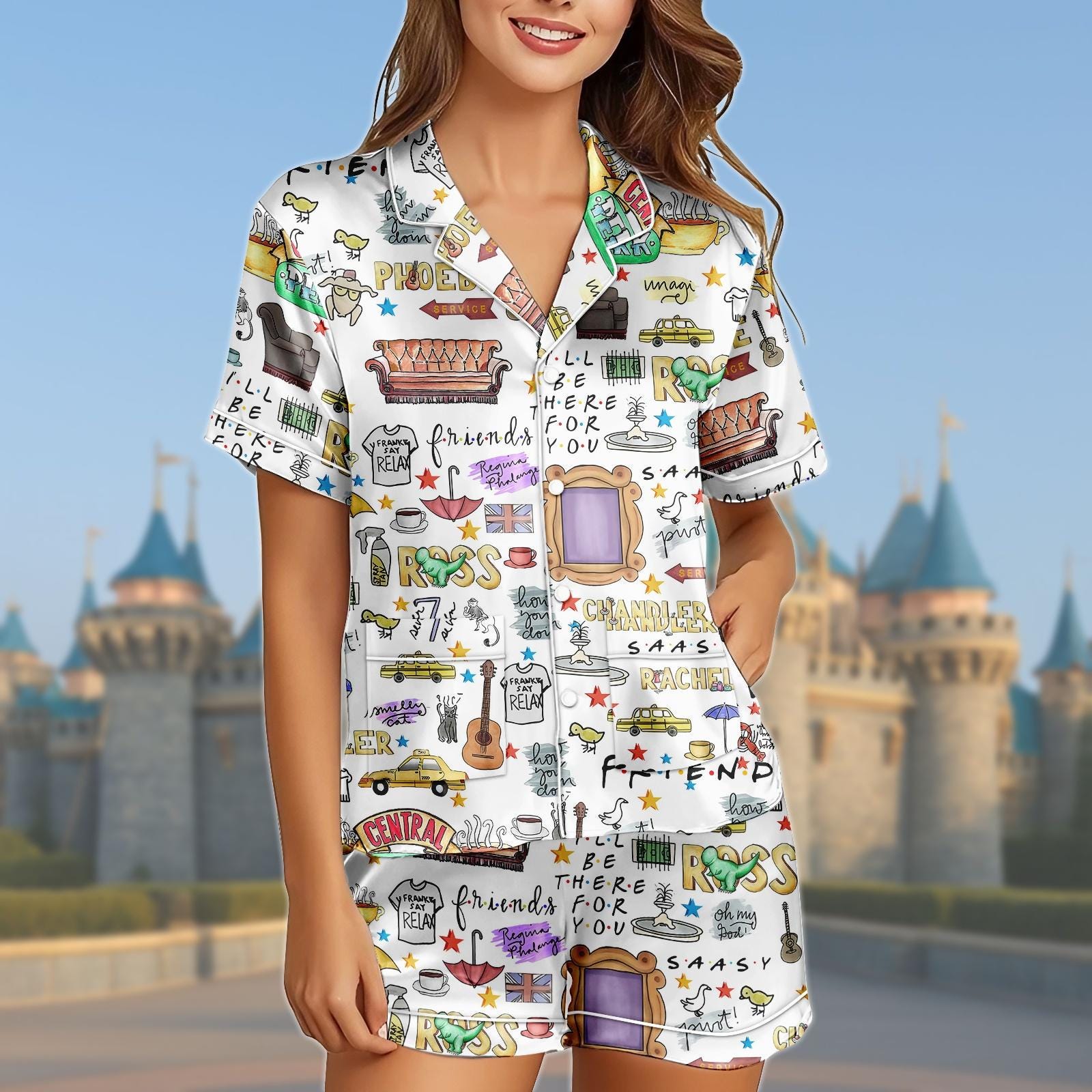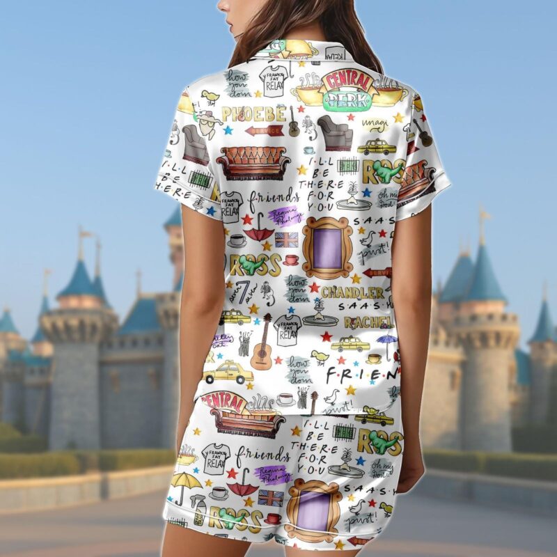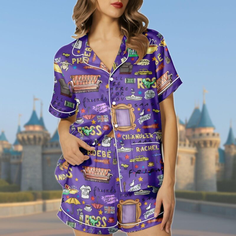 Friends TV Series Pajama Set, Friends Satin Short Sleepwear, Central Perk Loungewear, TV Show Fan Gifts, Rachel Monica Nightwear Outfit