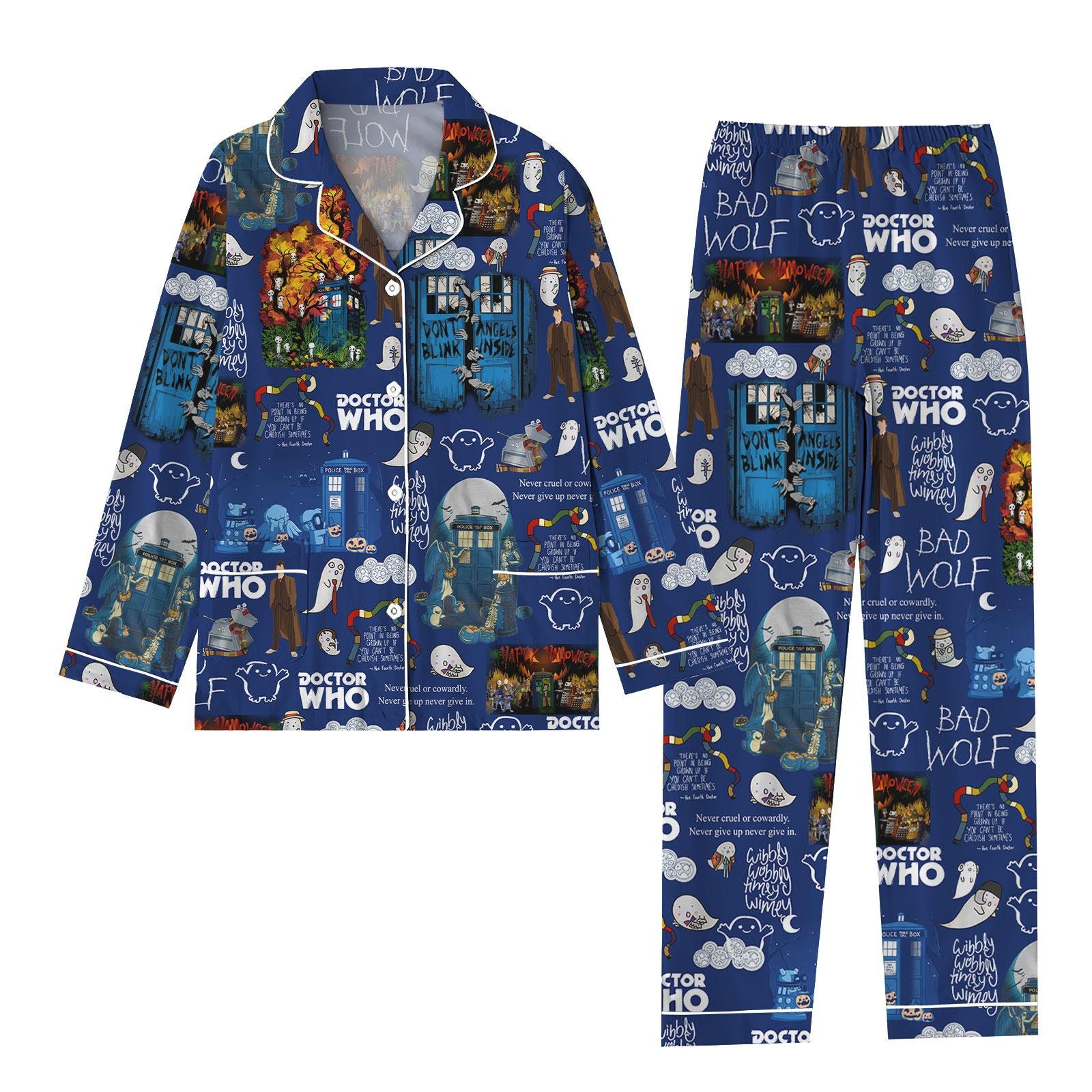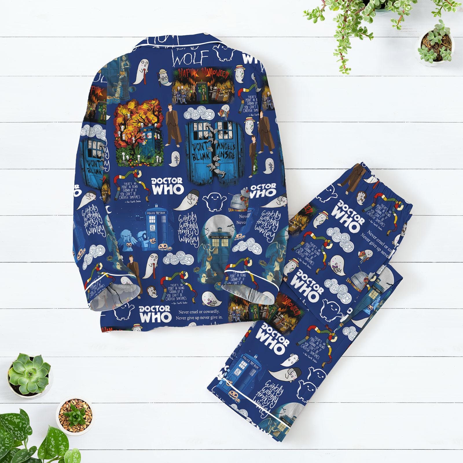 Halloween Doctor Who Pajamas Set, Dr Who Police Box Starry Night Shirt, Dr Who Holiday Pajamas, Tardis Movie Night Wear, Holiday Gift