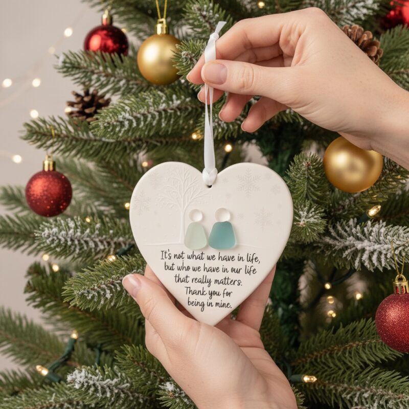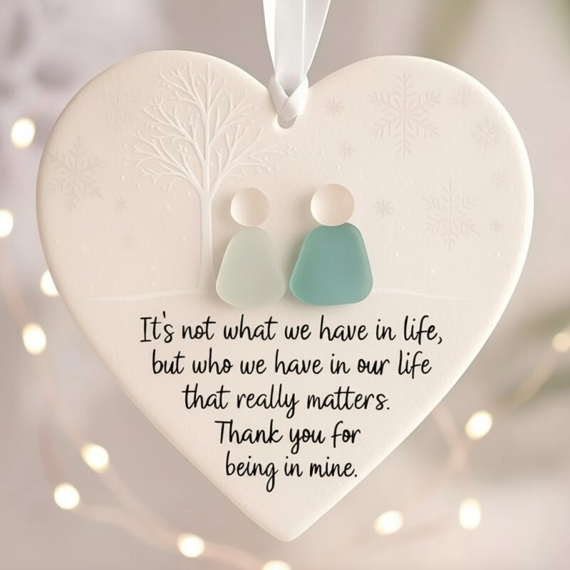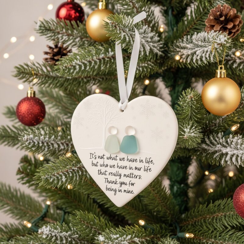 Heart-Shaped Sea Glass 2D Effect Print Ornament Friendship Decor Gift, Timeless Keepsake Heart, Christmas Tree Decor for Best Friends