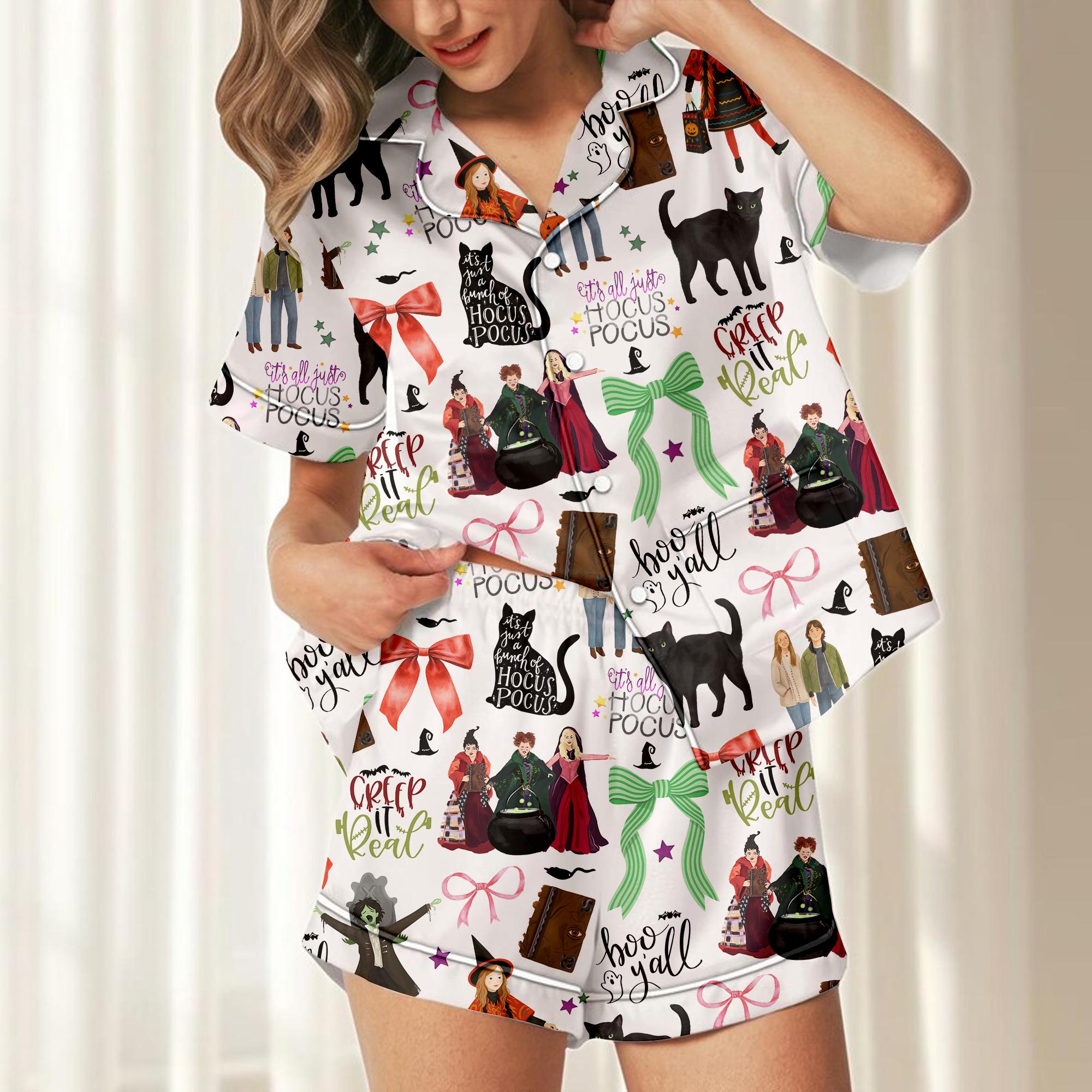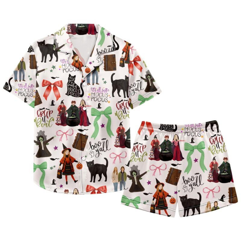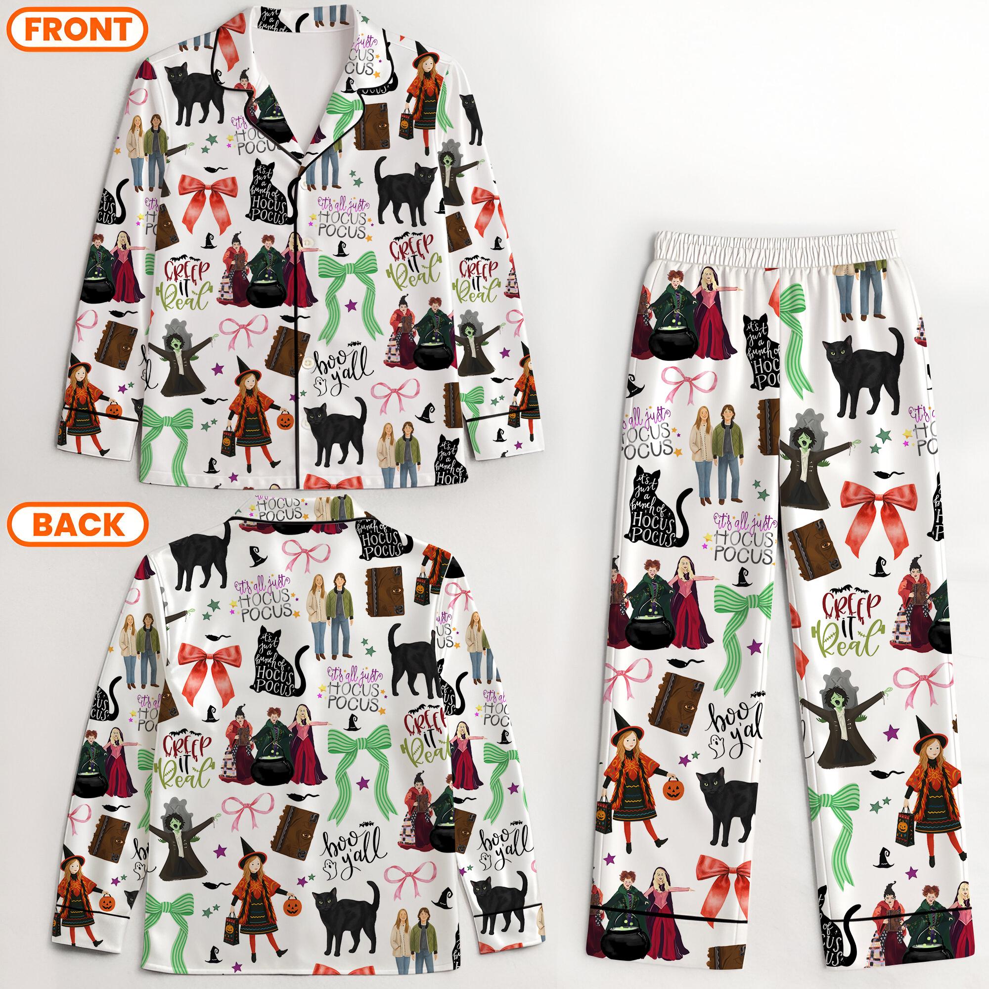 Hocus Pocus Pajamas Set, Sanderson Sisters Satin Pajamas, Spooky Season Pajamas Set, Trick Or Treat Shirt Pjs