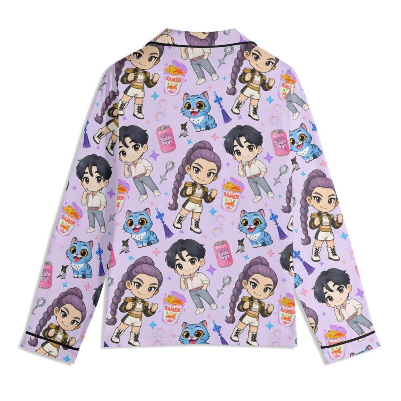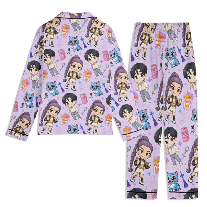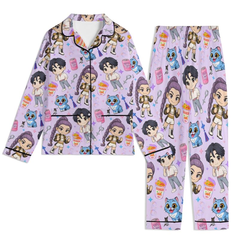 Stay cozy in style with this vibrant pajama set featuring playful K-Pop Demon Hunter -inspired prints. Made from soft, breathable fabric, it’s perfect for lounging, relaxing, or adding a fun touch to your sleepwear collection.
