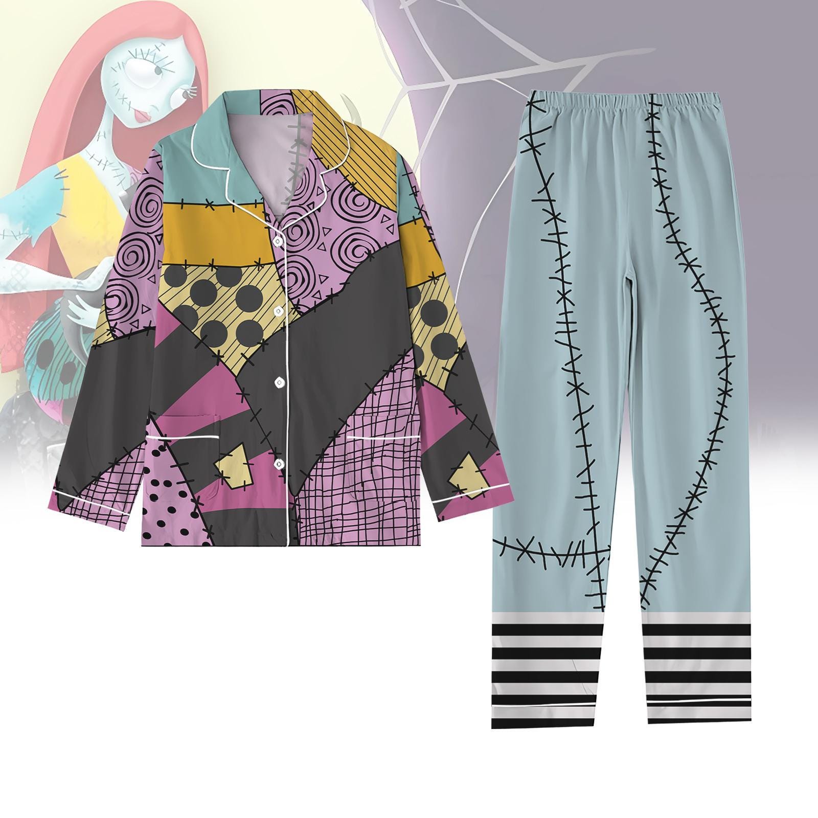 Nightmare Before Christmas Sally Costume Cosplay Pajamas, Womens Halloween Pajamas, Trick Or Treat Shirt, Halloween Pajama Pants