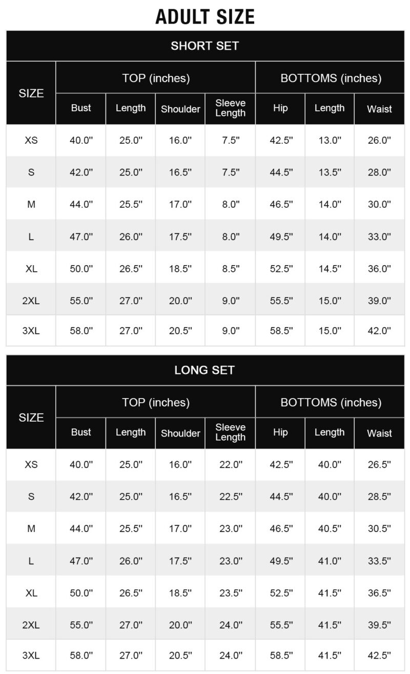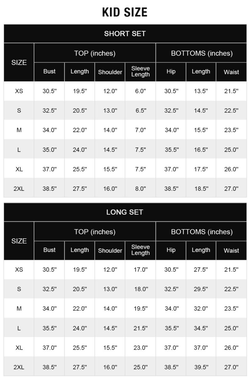 - If you would like to get short sleeve top to match long pants, it’s an idea to purchase both short and long set to make the match.
